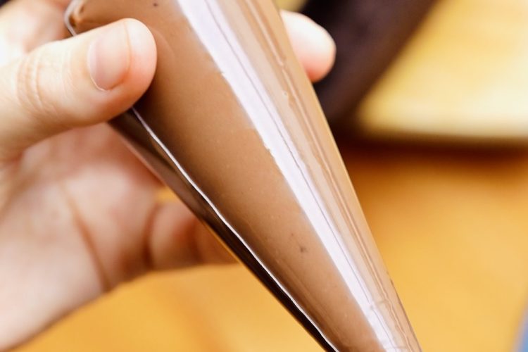 - Heat cream in a small saucepan until just beginning to boil; then pour over chocolate.
