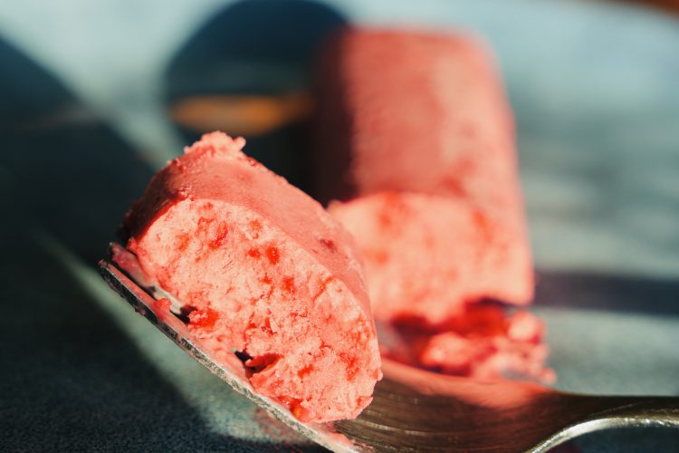 - Add the gelatine while the raspberry puree still warm and let it cool down.
