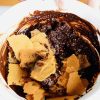 - Mix the molasses and boiling water in a wide bowl. Let it cool down.