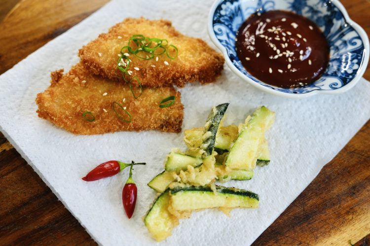 - Press the chicken into a plate of panko breadcrumbs, ensuring an even, crispy coating all around.